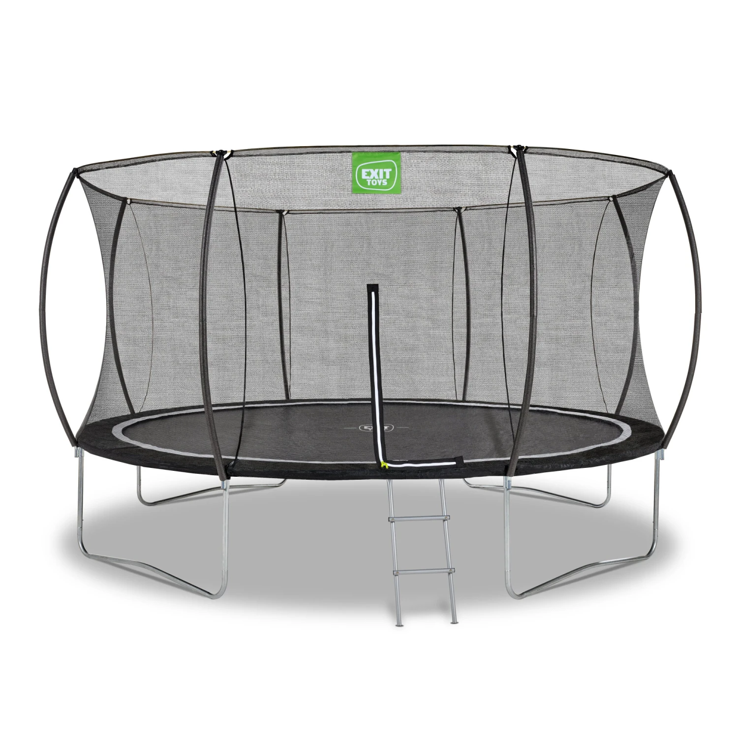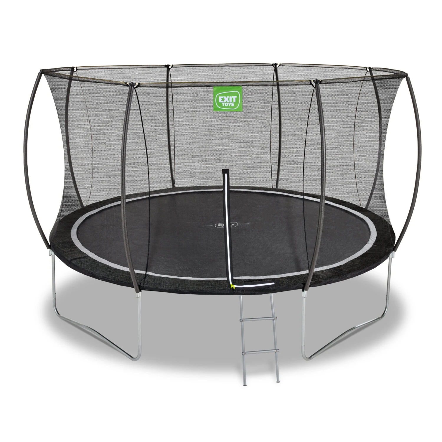 De EXIT Black Edition trampoline is een ronde trampoline met een matzwarte beschermrand. De trampoline heeft een veiligheidsnet met gebogen staanders, zodat het net altijd strakgespannen staat en kinderen er niet in kunnen blijven hangen. Ook heeft het veiligheidsnet een opvallende ritssluiting, zodat je direct kunt zien of de rits goed is gesloten. Een trampolineladder wordt bij deze trampoline op poten standaard meegeleverd waardoor de trampoline eenvoudig te betreden is. De EXIT Black Edition staat door de strakke vormgeving prachtig in elke tuin en is budgetvriendelijk geprijsd.