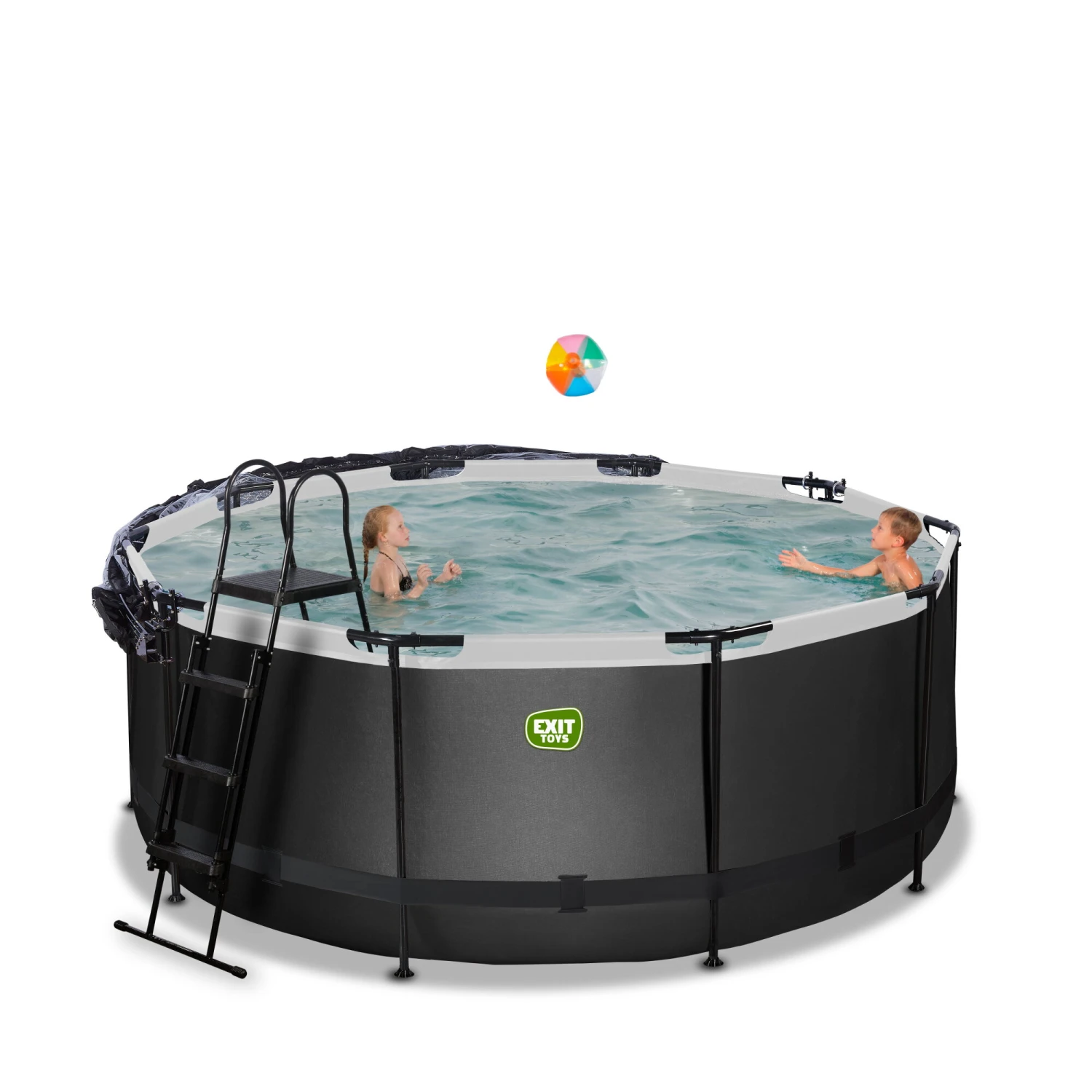 EXIT TOYS EXIT Black Leather Zwembad ø360x122cm Met Zandfilterpomp En Overkapping En Accessoire Set – Zwart
