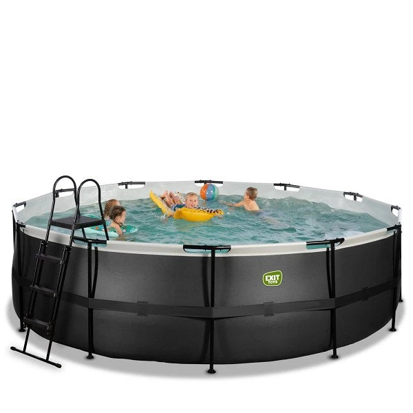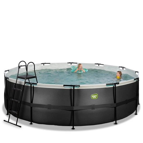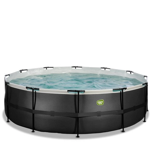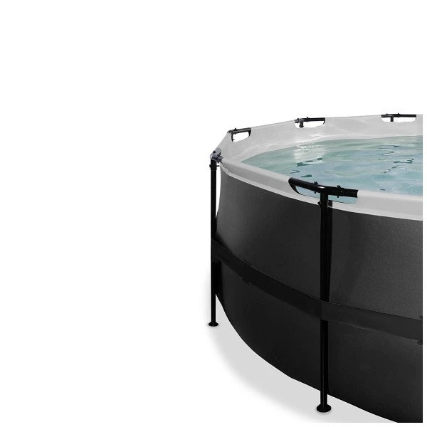 Ontdek hoe stevig een rond opzetzwembad kan zijn: het gepoedercoate stalen frame en de sterke poten van het EXIT Black Leather zwembad zorgen ervoor dat het bad altijd stabiel staat en jarenlang meegaat. De meegeleverde filterpomp houdt het water schoon en in beweging zodat vervuiling van het water wordt tegengegaan.