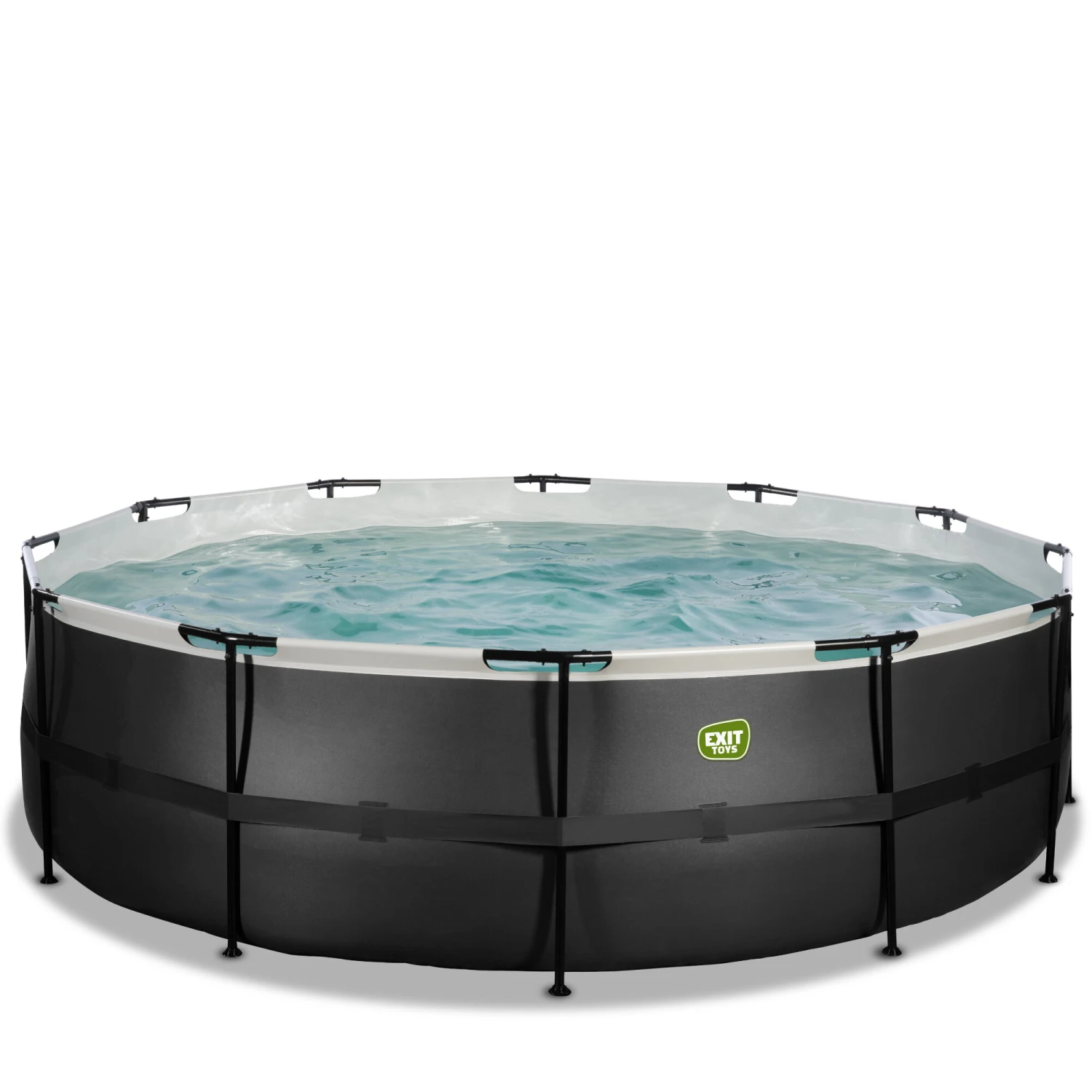 Ontdek hoe stevig een rond opzetzwembad kan zijn: het gepoedercoate stalen frame en de sterke poten van het EXIT Black Leather zwembad zorgen ervoor dat het bad altijd stabiel staat en jarenlang meegaat. En het meegeleverde watercirculatiesysteem maakt dit zwembad helemaal af. De hoogwaardige zandfilterpomp reinigt de kleinste deeltjes uit het zwembad door het water krachtig door het filterbed heen te pompen. Dit zorgt ervoor dat vuil, zoals zand, ongedierte of algen achterblijven in het filter. In het EXIT Black Leather zwembad neem je altijd een frisse duik!