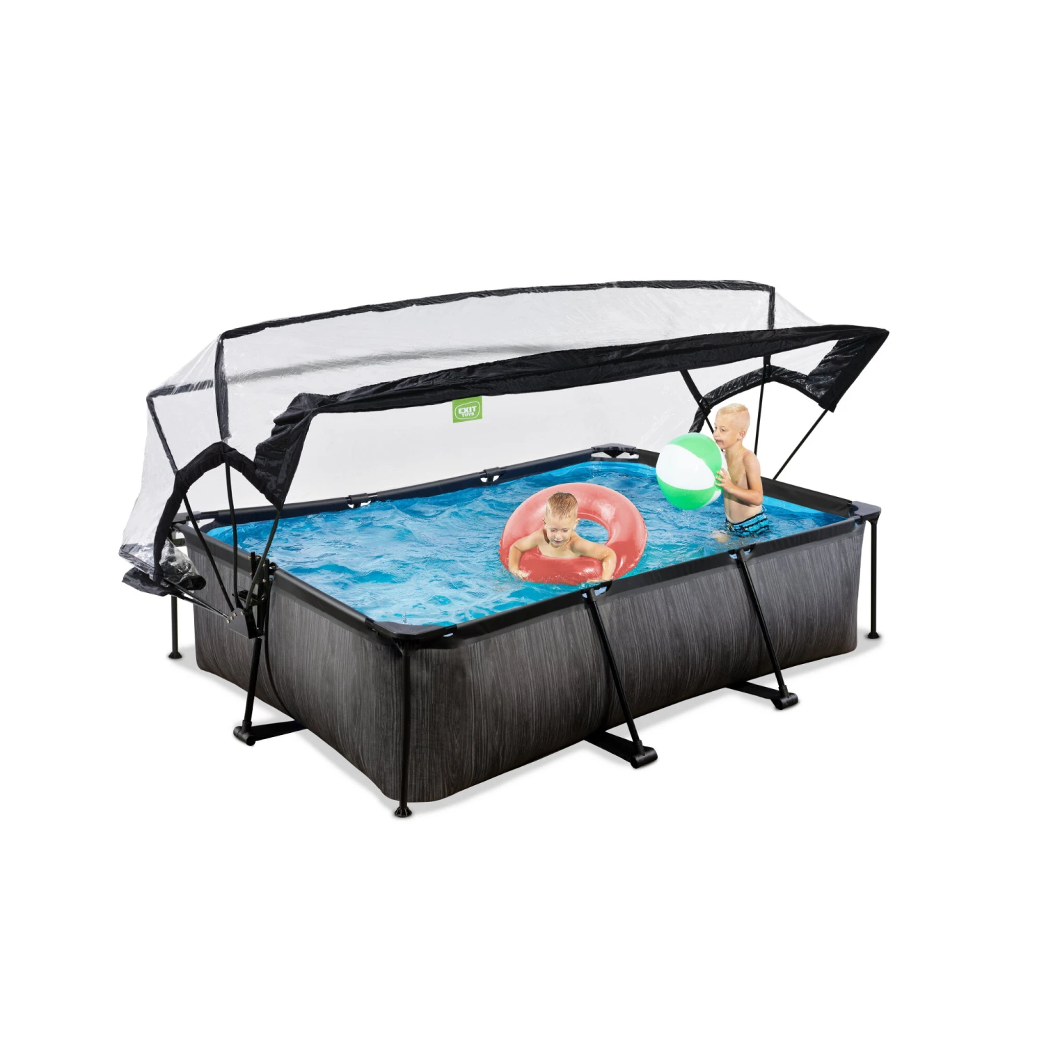 EXIT Black Wood zwembad 220x150x65cm met filterpomp en overkapping – zwart