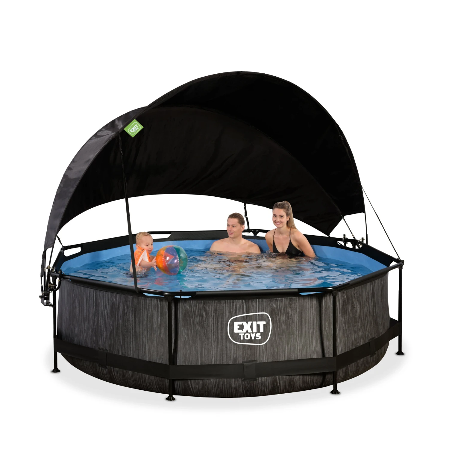 EXIT TOYS EXIT Black Wood Zwembad ø300x76cm Met Filterpomp En Schaduwdoek – Zwart