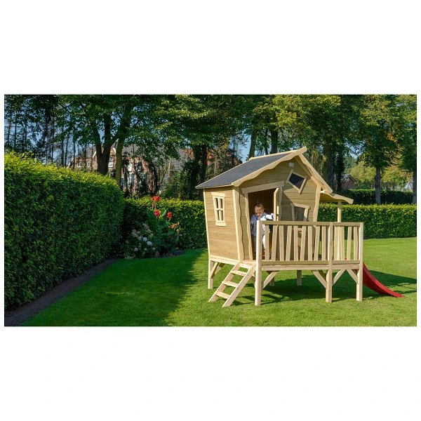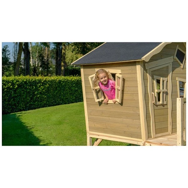 De speelhuisjes van EXIT Toys zijn weerbestendig dankzij het waterdichte bitumen dak en gemaakt van FSC® gecertificeerd cederhout (FSC 100%, FSC® SCS-COC-007799). Deze houtsoort splintert niet en is van nature bestand tegen weersinvloeden zoals regen en dus resistent tegen houtrot. Je hoeft EXIT houten speelhuisjes voor gebruik niet te behandelen, kinderen kunnen er direct veilig mee spelen.