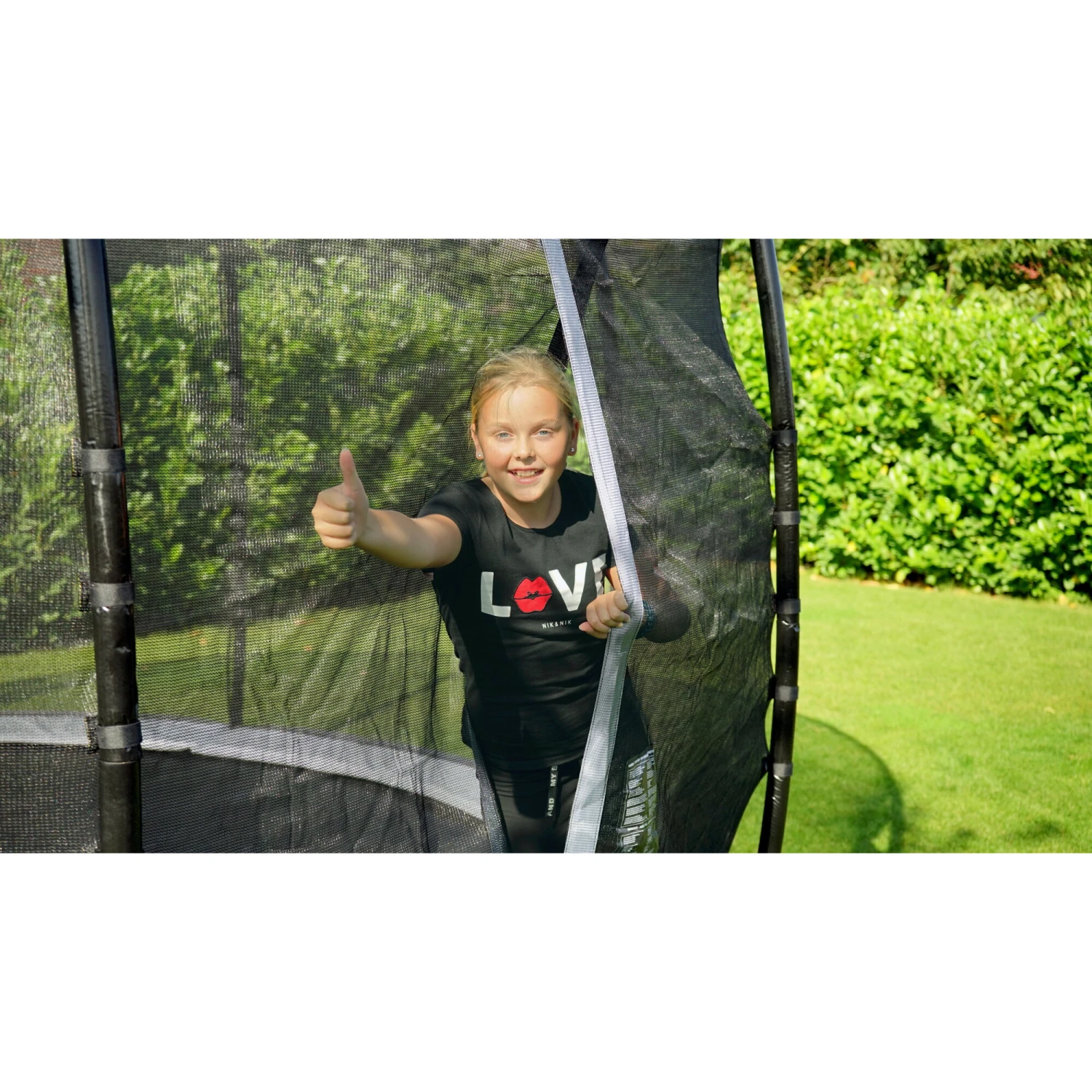Bij de EXIT Elegant inground trampolines wordt een veiligheidsnet geleverd. Het Economy veiligheidsnet heeft een kindvriendelijke ingang door de overlappende deur en biedt éxtra bescherming, omdat de inground trampoline al laag aan de grond staat. En kom je door een wilde sprong in het veiligheidsnet terecht? Dan zorgt de dikke schuimlaag om de palen van het veiligheidsnet ervoor dat je je niet zult bezeren. De Elegant inground trampoline is voorzien van alle gemakken voor urenlang springplezier!