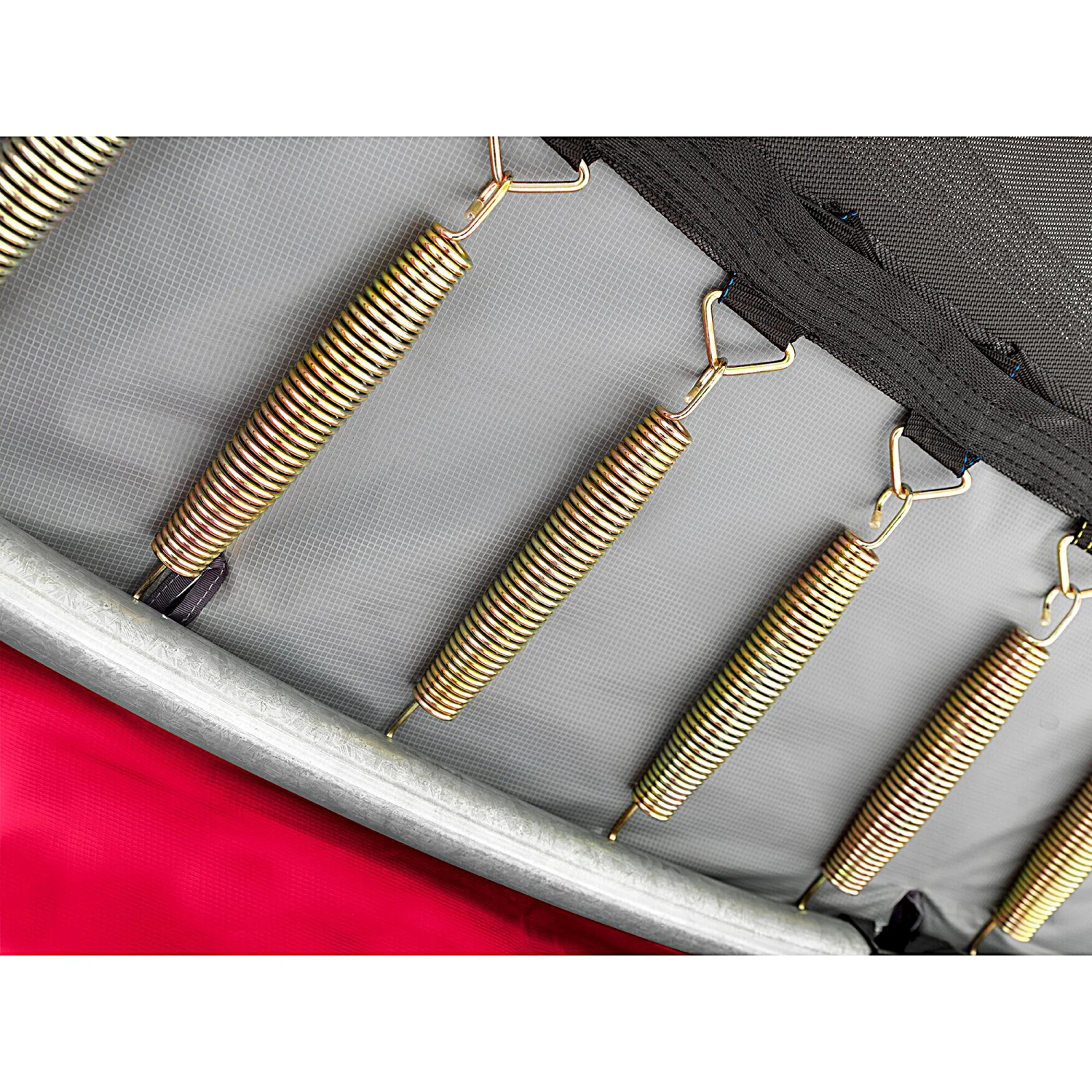 EXIT Elegant Premium trampolines zijn niet alleen mooi en van hoge kwaliteit, maar ook nog eens duurzaam. Het frame is gegalvaniseerd en daarna gepoedercoat, zodat roest geen kans maakt. De extra lange dubbel conische premium-veren, die 21,6 cm lang zijn, zorgen voor de ultieme springervaring met een perfecte bounce en zachte landing. Ook de rok van de beschermrand is langer dan gebruikelijk en de vulling in de beschermrand is dikker in vergelijking met de standaard EXIT Elegant trampoline. En de extra dikke PVC toplaag op de beschermrand zorgt er tenslotte voor dat deze langer meegaat, super duurzaam dus!