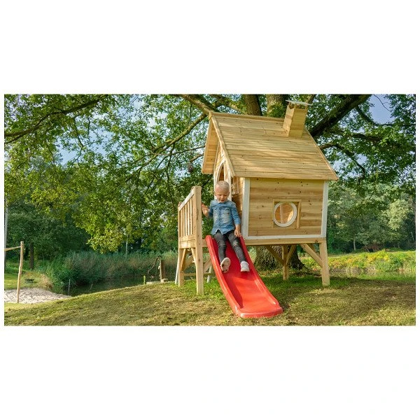De speelhuisjes van EXIT Toys zijn gemaakt van FSC® gecertificeerd cederhout (FSC 100%, FSC® SCS-COC-007799). Deze houtsoort splintert niet en is van nature bestand tegen weersinvloeden zoals regen en dus resistent tegen houtrot. Je hoeft EXIT houten speelhuisjes voor gebruik niet te behandelen, kinderen kunnen er direct veilig mee spelen.