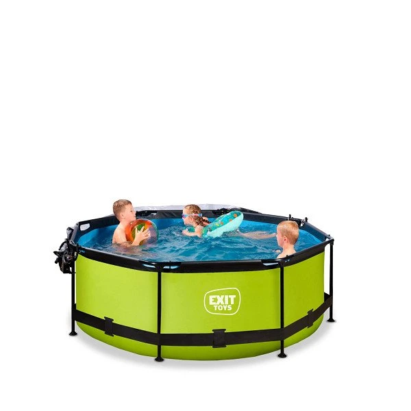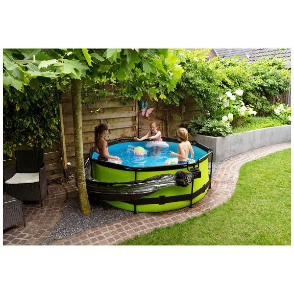 De vrolijke, felle kleur en het zwarte frame geven het Lime zwembad een unieke uitstraling. De binnenzijde van het zwembad is blauw, zodat je het frisse zwembad gevoel houdt.