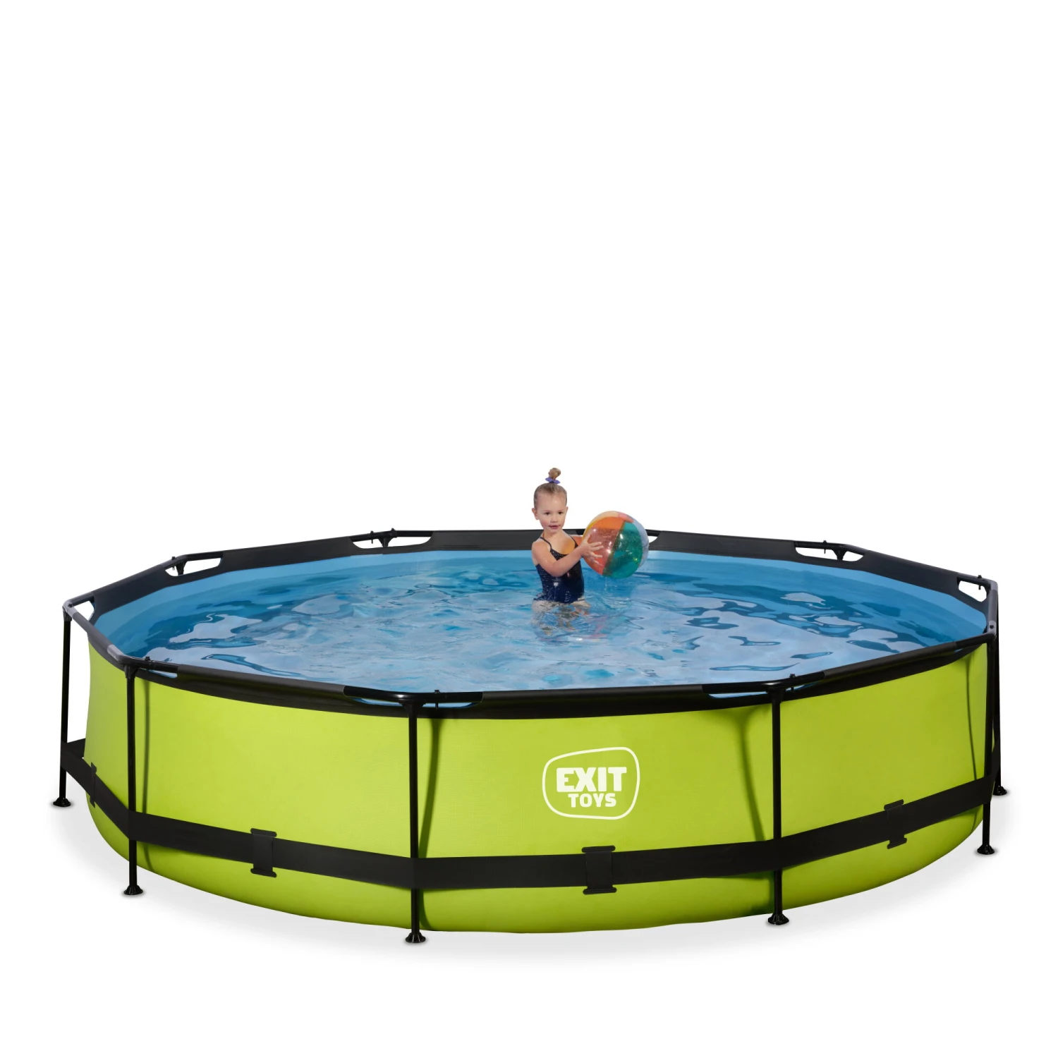 De vrolijke, felle kleur en het zwarte frame geven het Lime zwembad een unieke uitstraling. De binnenzijde van het zwembad is blauw, zodat je het frisse zwembad gevoel houdt. De ronde vorm van het zwembad creëert een gezellige sfeer en zorgt ervoor dat je eenvoudig met meerdere personen plezier kunt beleven in je zwembad. Kies voor de zwembaden van EXIT Toys, een echte musthave voor in je tuin tijdens de zomer!