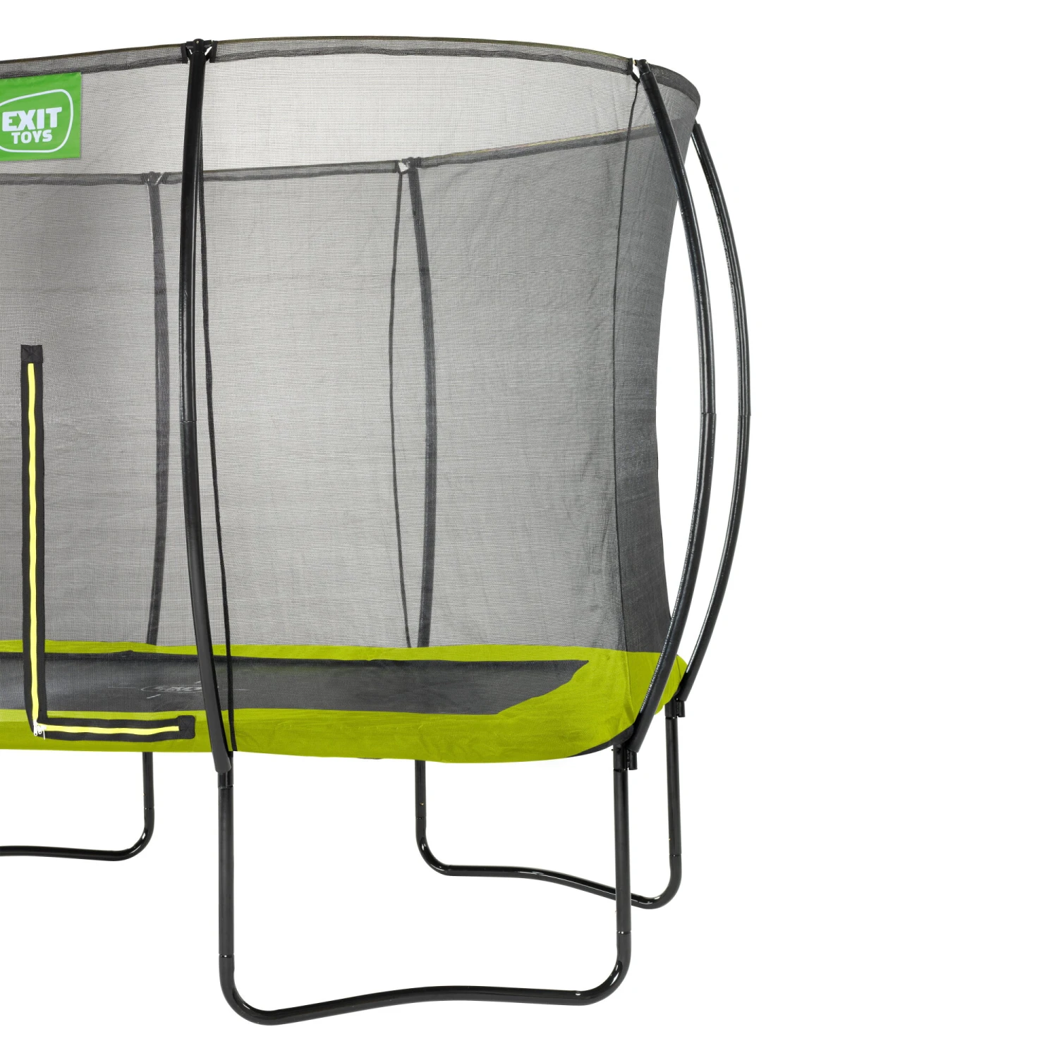 De EXIT Silhouette trampoline op poten is een rechthoekige trampoline met een limoengroene beschermrand. Het veiligheidsnet, dat standaard wordt meegeleverd met de trampoline op poten, is voorzien van gebogen staanders zodat het net strakgespannen staat. Dit is niet alleen extra veilig omdat kinderen niet in het net kunnen blijven hangen, maar het oogt ook rustiger in de tuin. Het veiligheidsnet is voorzien van een fluorescerende groene ritssluiting die goed opvalt, zodat je direct kunt zien of de rits goed is gesloten.