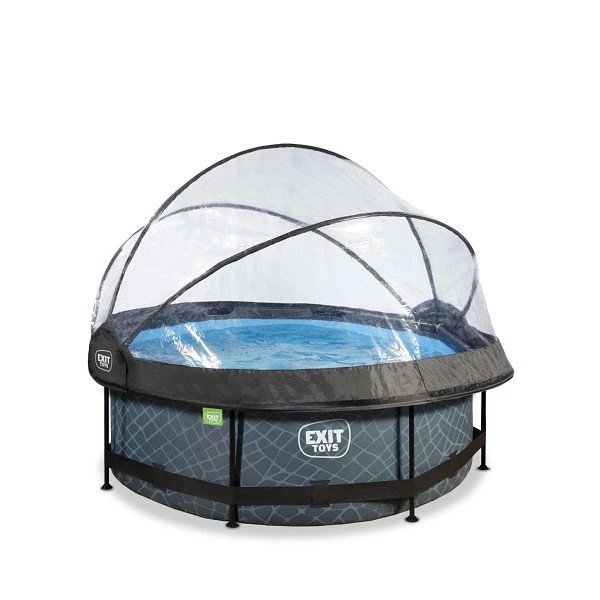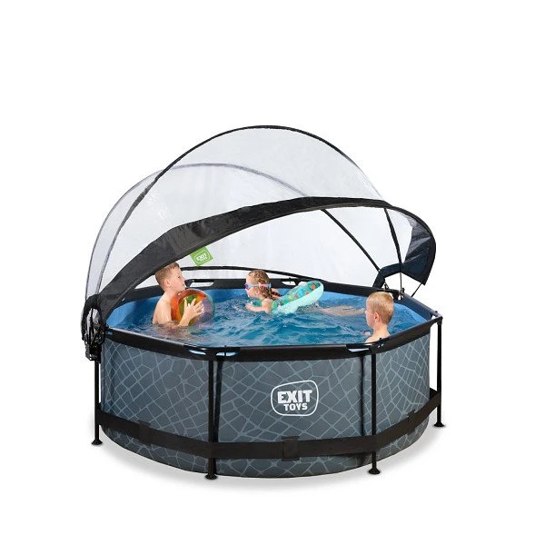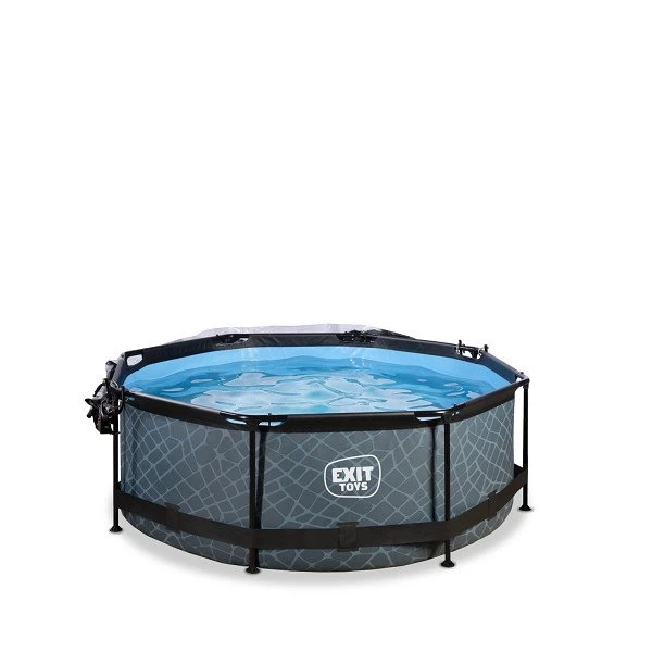 Het stoere steenpatroon en zwarte frame geven het Stone zwembad een unieke uitstraling en dankzij de natuurlijke look integreert het zwembad volledig in je tuin. De binnenzijde van het zwembad is blauw, zodat je het frisse zwembad gevoel houdt.