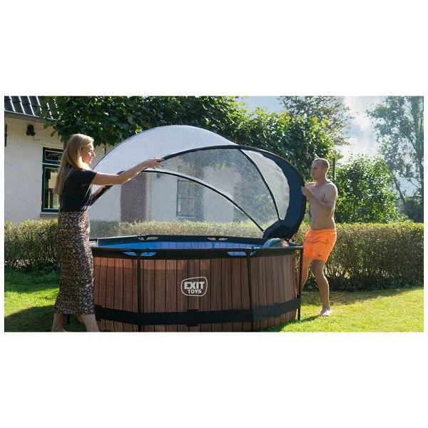 Met de EXIT overkapping voor zwembaden ben je niet langer afhankelijk van de weersvoorspellingen. De overkapping zorgt ervoor dat er geen vuil meer in het water kan komen en is tegelijkertijd een duurzame oplossing voor het verwarmen van je water, want de warmte van de zon wordt onder de kap vastgehouden. De overkapping is zeer eenvoudig te openen door een uniek scharniermechanisme en dankzij het transparante zeil mis je niets van wat er buiten het bad gebeurt.