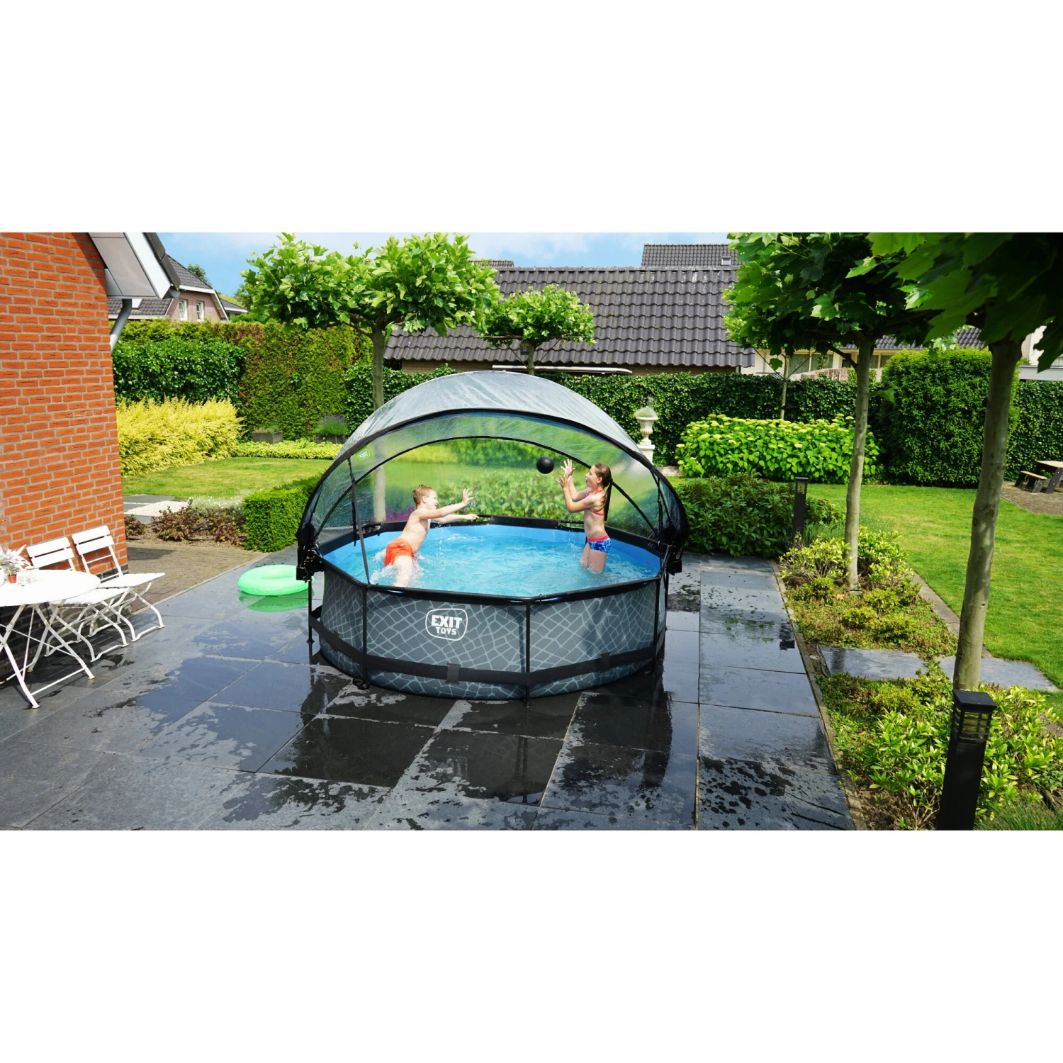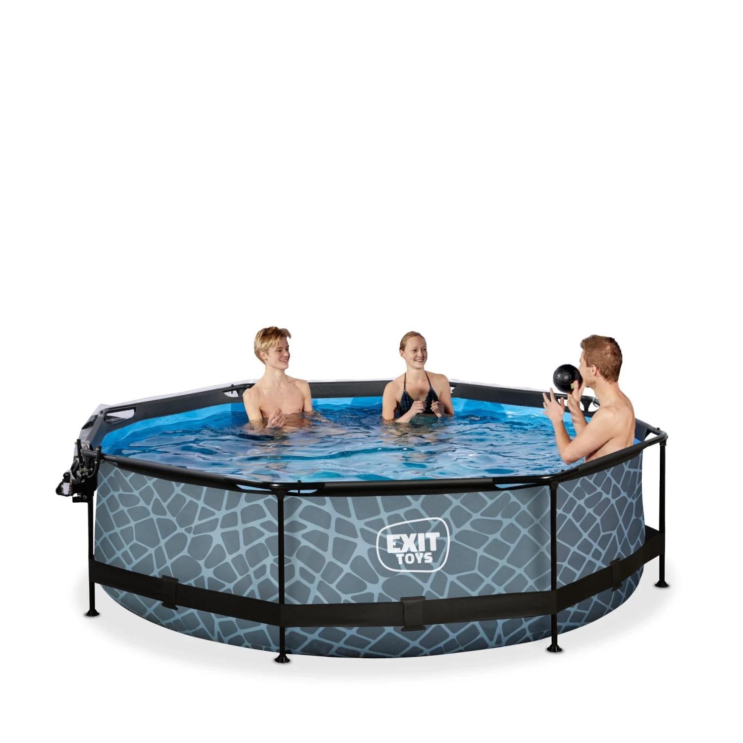 EXIT TOYS EXIT Stone Zwembad ø300x76cm Met Filterpomp En Overkapping – Grijs