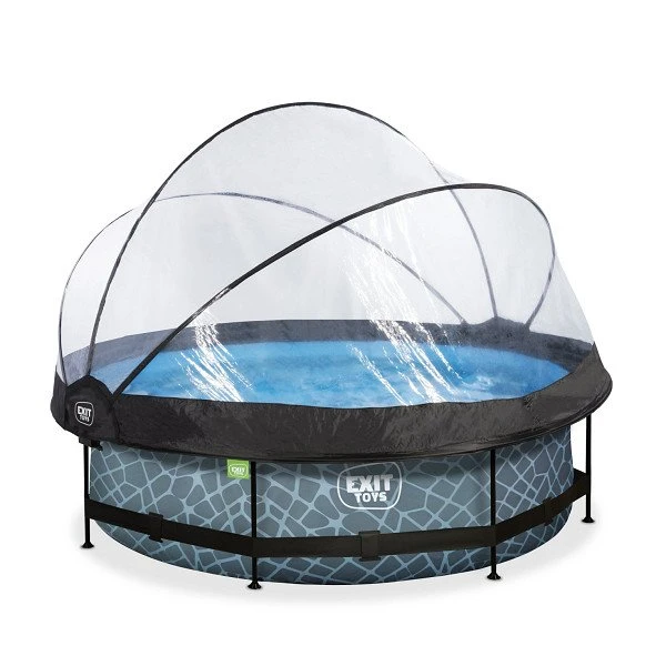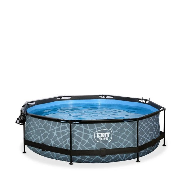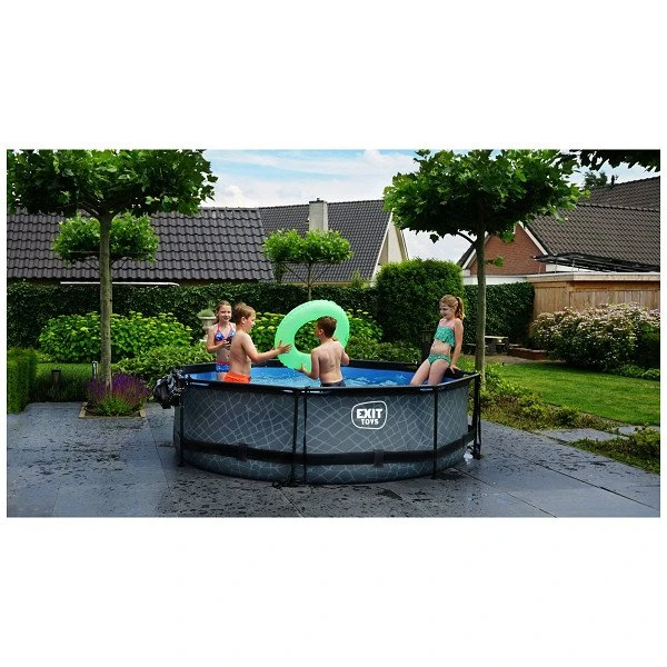 Het stoere steenpatroon en zwarte frame geven het Stone zwembad een unieke uitstraling en dankzij de natuurlijke look integreert het zwembad volledig in je tuin. De ronde vorm van het zwembad creëert een gezellige sfeer en zorgt ervoor dat je eenvoudig met meerdere personen plezier kunt beleven in je zwembad. Met de ronde zwembaden van EXIT Toys verveel je je geen moment.
