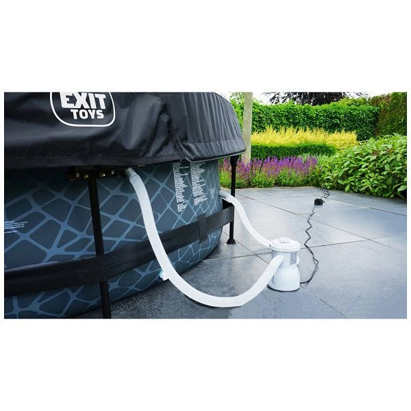Ontdek hoe stevig een rond opzetzwembad kan zijn: het gepoedercoate stalen frame en de sterke poten van het EXIT Stone zwembad zorgen ervoor dat het bad altijd stabiel staat en jarenlang meegaat. De meegeleverde filterpomp houdt het water schoon en in beweging zodat vervuiling van het water wordt tegengegaan. De filterpomp kan eenvoudig aan het zwembad worden gemonteerd en door middel van filtercartridges wordt het water ververst.