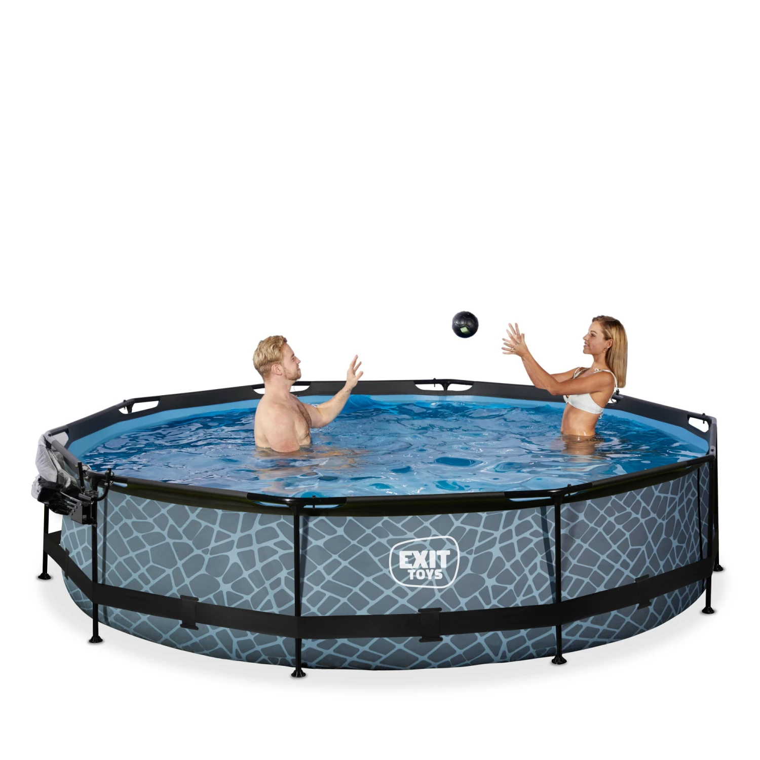 EXIT TOYS EXIT Stone Zwembad ø360x76cm Met Filterpomp En Overkapping – Grijs