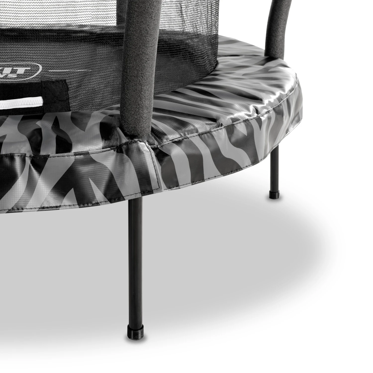 De EXIT Tiggy junior trampoline is een mini trampoline voor kinderen van drie tot vijf jaar. Deze compacte ronde trampoline met veiligheidsnet heeft een zwartgrijze beschermrand met stoere tijgerprint en een lage opstap, zodat peuters en kleuters de trampoline eenvoudig kunnen betreden. Op de Tiggy junior trampoline van EXIT Toys beleven de allerkleinsten groots springplezier.