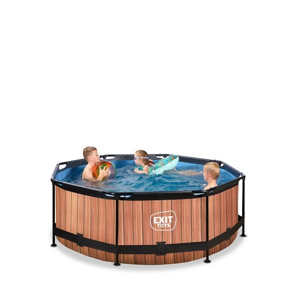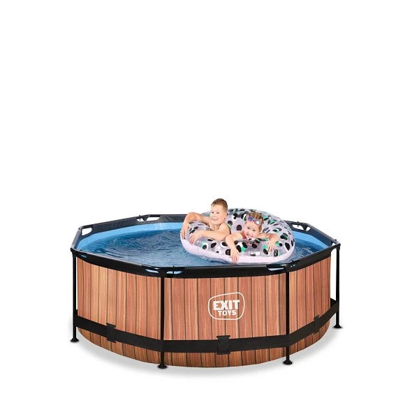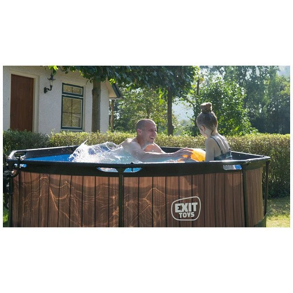 Het stoere houtpatroon en zwarte frame geven het Wood zwembad een unieke uitstraling en dankzij de natuurlijke look integreert het zwembad volledig in je tuin. De binnenzijde van het zwembad is blauw, zodat je het frisse zwembad gevoel houdt.