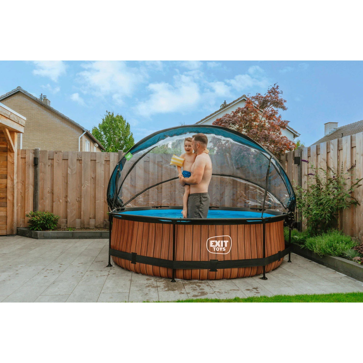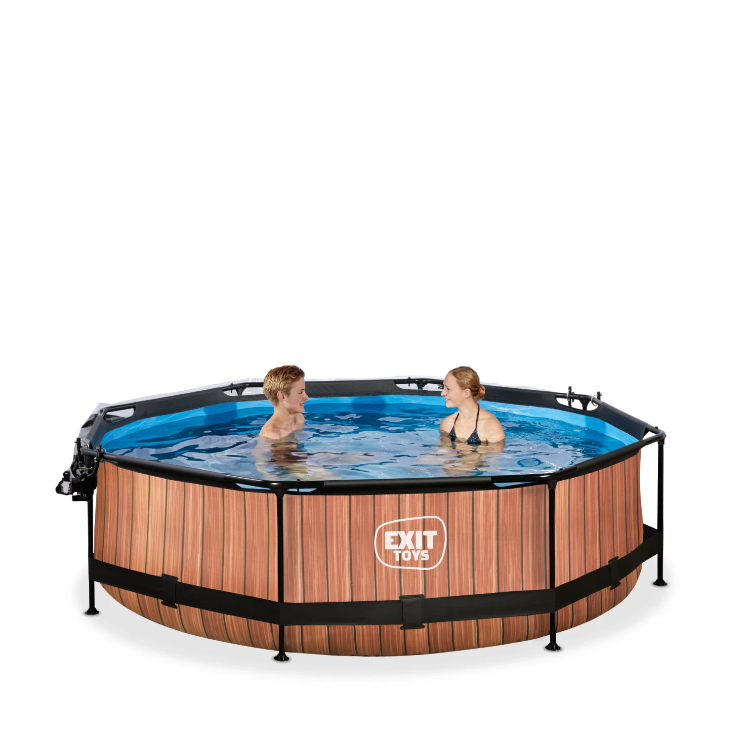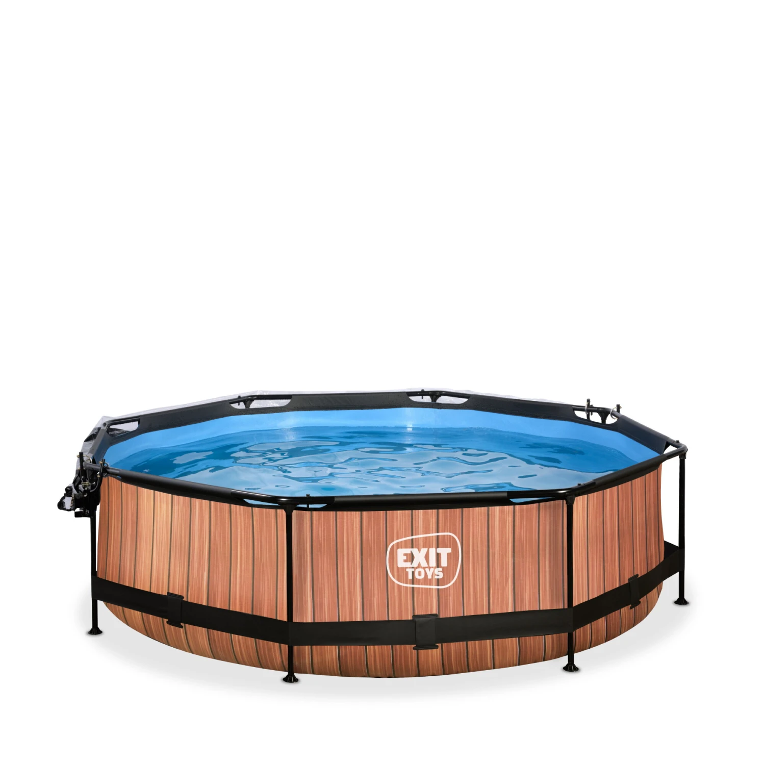 EXIT TOYS EXIT Wood Zwembad ø300x76cm Met Filterpomp En Overkapping – Bruin