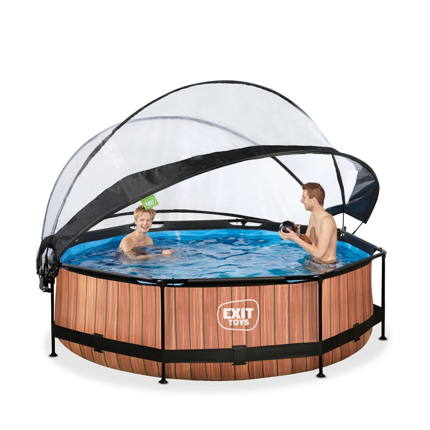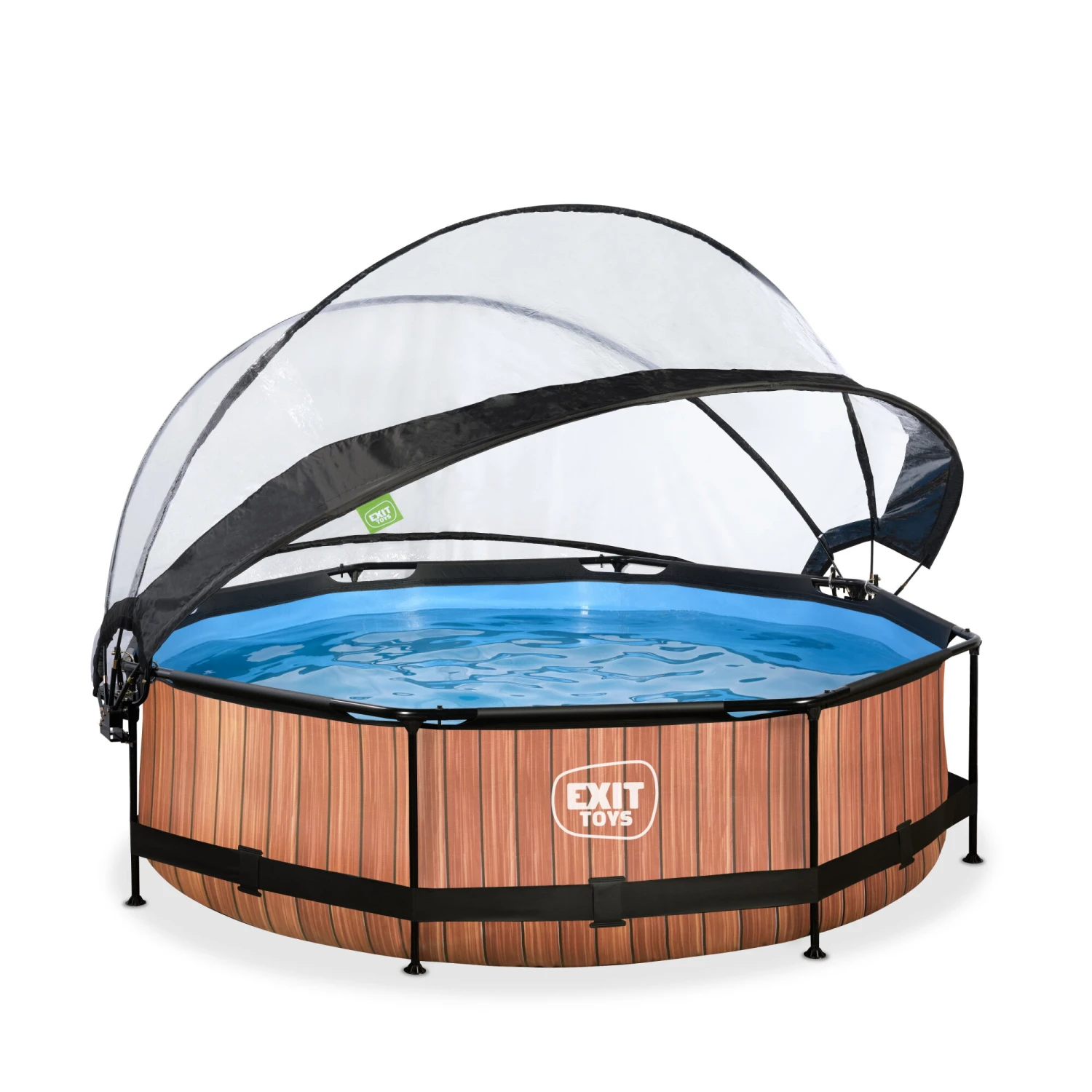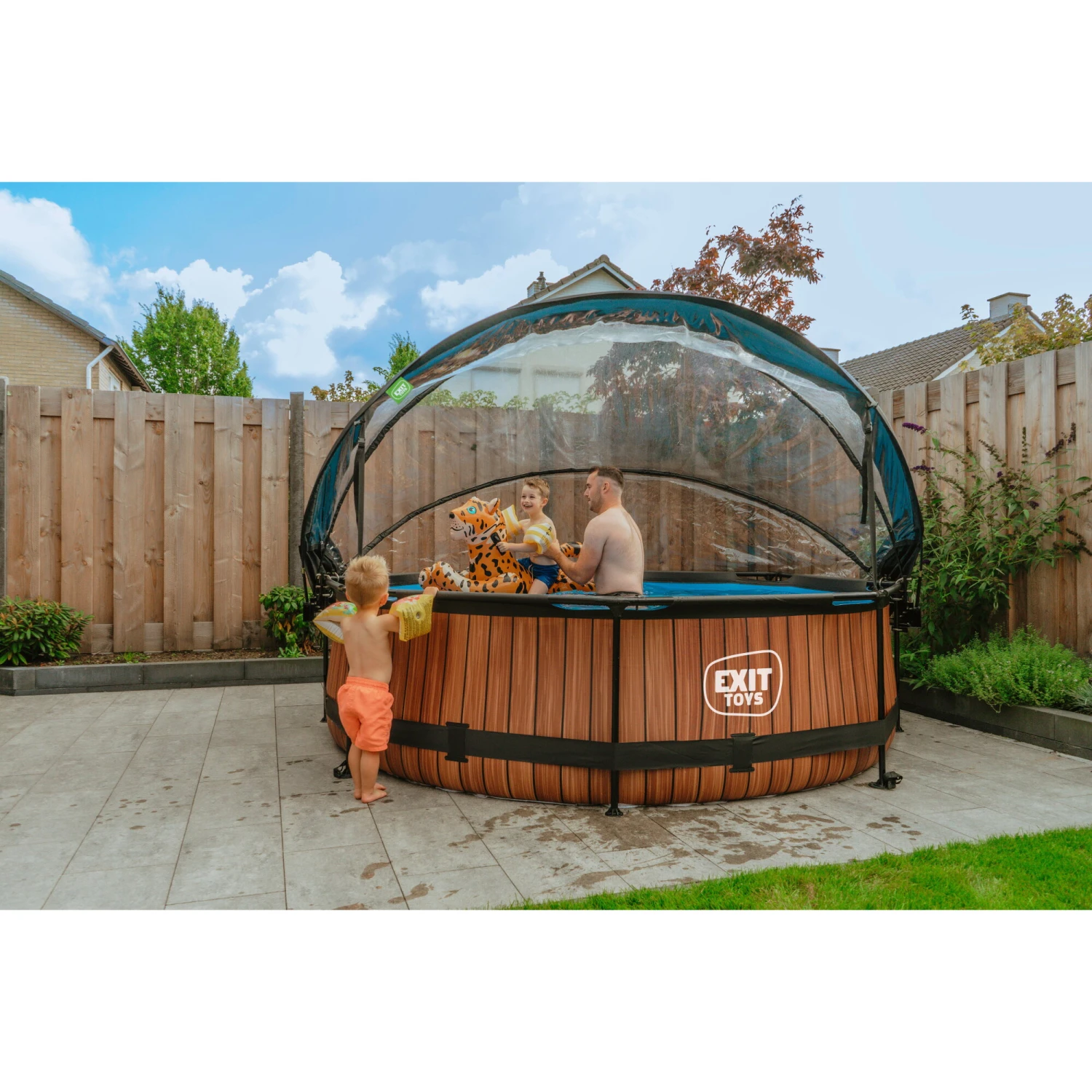 EXIT TOYS EXIT Wood Zwembad ø300x76cm Met Filterpomp En Overkapping – Bruin