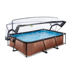 EXIT TOYS EXIT Wood Zwembad 220x150x65cm Met Filterpomp En Overkapping – Bruin